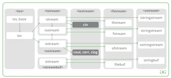 - Ši klasė deklaruoja įvesties funkcijas, tokias kaip get (), getline () ir read ().